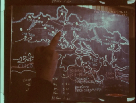 In his work, Bolaño is reckoning in a critical way with gestures of geopolitical domination that have a long history in Latin American cultural production. The 1980 short documentary Destino Austral (Austral Destiny), directed by Vittorio di Girólamo and produced with the support of the Chilean dictatorship (1973–1990), portrays the construction of the Austral Highway, Pinochet’s star infrastructure project, conceived to facilitate settler colonialism in the hostile, fragmented terrain of Chilean Patagonia. In several scenes, military men point to the map of the region, with gestures of dominion over an area whose sense of connectivity with the rest of the country has been viewed as somewhat vulnerable, according to the historian Ernesto Bohoslavsky, given its more recent and somewhat tenuous incorporation into the state.21 The hands on the map offer a sense of prosthetic reinforcement: a “weak” territory’s belonging to the mainland can be strengthened with the assurance of military force, shoring up the authoritarian and nationalistic “destiny” of Patagonia.